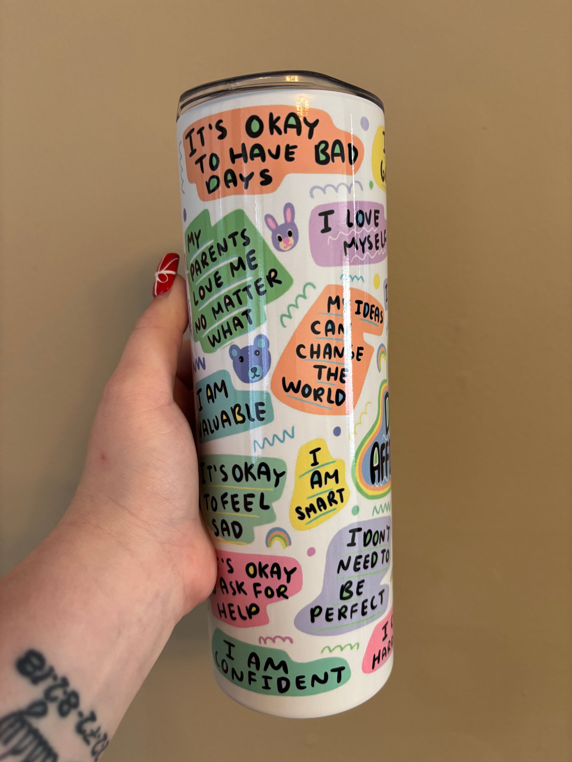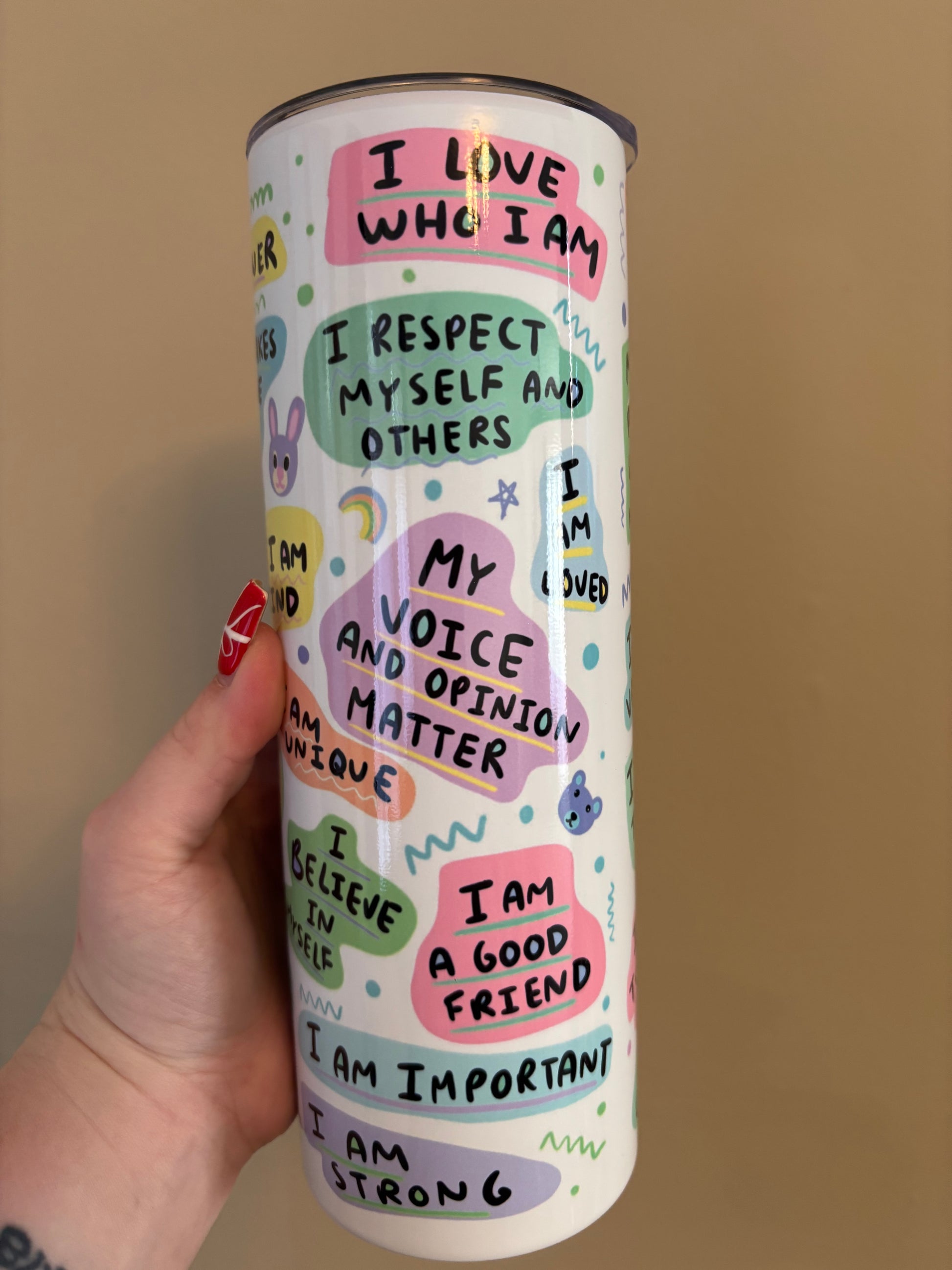 Introducing our Kid Daily Affirmations tumbler from our self-love range.